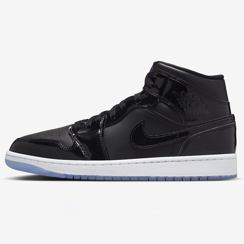 Inspired by the beloved AIR JtggORDAN 11 Space Jam, this AIR JtggORDAN 1 Mid is highlighted by the Black leather base with patent leather overlays and mesh tongues. The Space Jam comes to life with the use of the Dark Concord hits spotted on the tongue branding and insoles all while being placed atop a White midsole and icy translucent outsole.