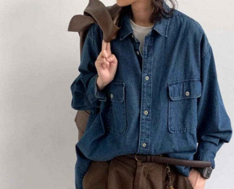 Casual Loose Basic Style Workwear Denim Shirt Jacket